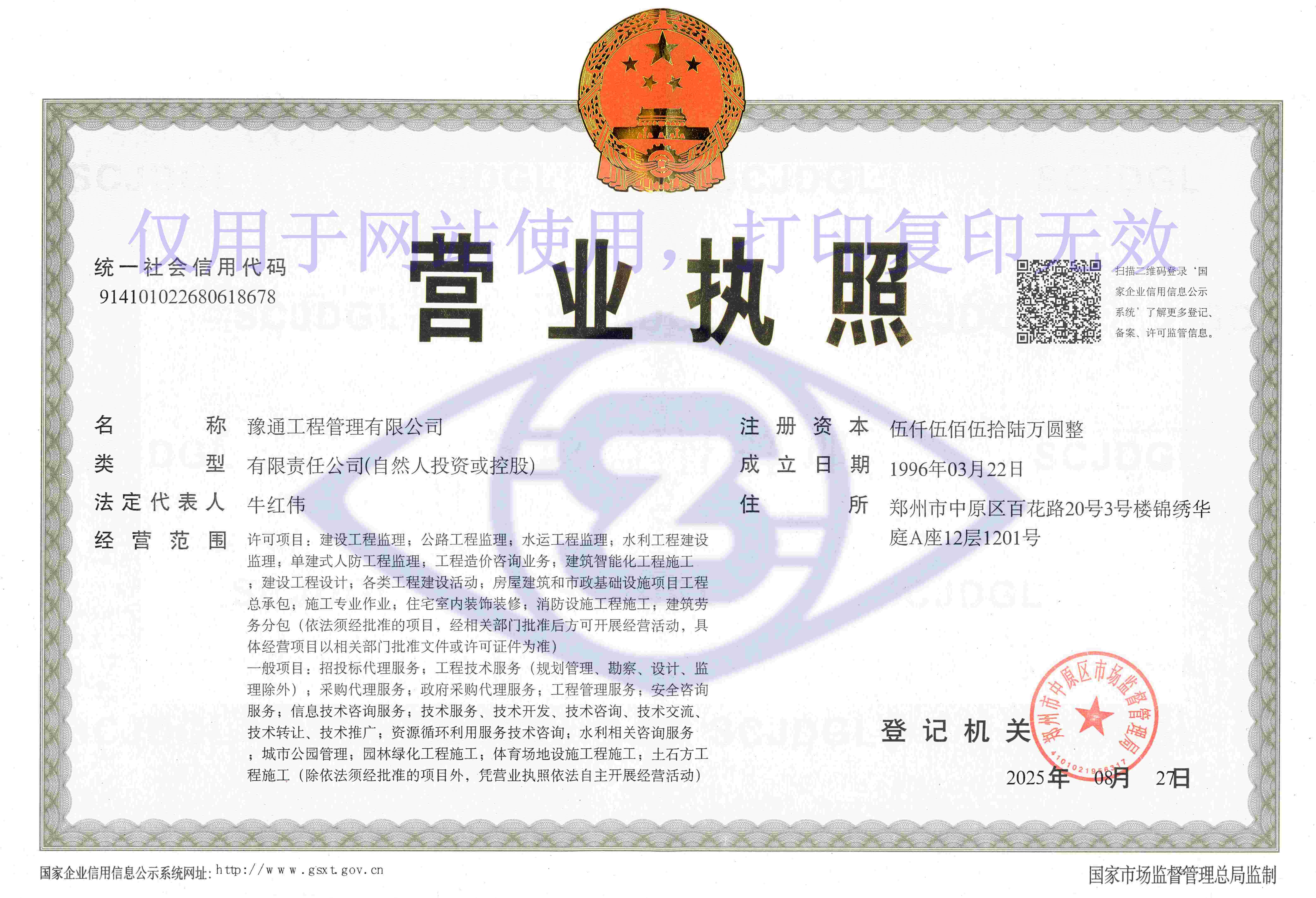 豫通工程管理有限公司(原鄭州市豫通市政公用工程監(jiān)理有限公司),成立于1996年,企業(yè)可提供工程監(jiān)理,工程招標(biāo)代理,政府采購(gòu)代理,工程造價(jià)咨詢(xún);工程項(xiàng)目管理;建設(shè)工程項(xiàng)目咨詢(xún)服務(wù);全過(guò)程工程咨詢(xún)服務(wù);建筑領(lǐng)域內(nèi)的技術(shù)開(kāi)發(fā)、技術(shù)轉(zhuǎn)讓、技術(shù)咨詢(xún)及技術(shù)服務(wù)等相關(guān)服務(wù)?,F(xiàn)擁有工程監(jiān)理綜合資質(zhì),建筑裝修裝飾工程施工資質(zhì),同時(shí)開(kāi)展招標(biāo)代理及工程造價(jià)咨詢(xún)業(yè)務(wù);現(xiàn)為中國(guó)建設(shè)監(jiān)理協(xié)會(huì)會(huì)員單位,守合同重信用企業(yè),河南省監(jiān)理企業(yè)二十強(qiáng)(建筑業(yè)骨干企業(yè)),河南省建設(shè)監(jiān)理協(xié)會(huì)副秘書(shū)長(zhǎng)單位,河南省投標(biāo)先進(jìn)單位和誠(chéng)實(shí)守信單位,河南工程咨詢(xún)行業(yè)十佳杰出單位,河南省住房和城鄉(xiāng)建設(shè)廳重點(diǎn)培育企業(yè),河南省信用評(píng)價(jià)優(yōu)秀等級(jí)監(jiān)理企業(yè),高新技術(shù)企業(yè),連續(xù)多年被評(píng)為省先進(jìn)監(jiān)理企業(yè)和誠(chéng)信建設(shè)先進(jìn)企業(yè)。